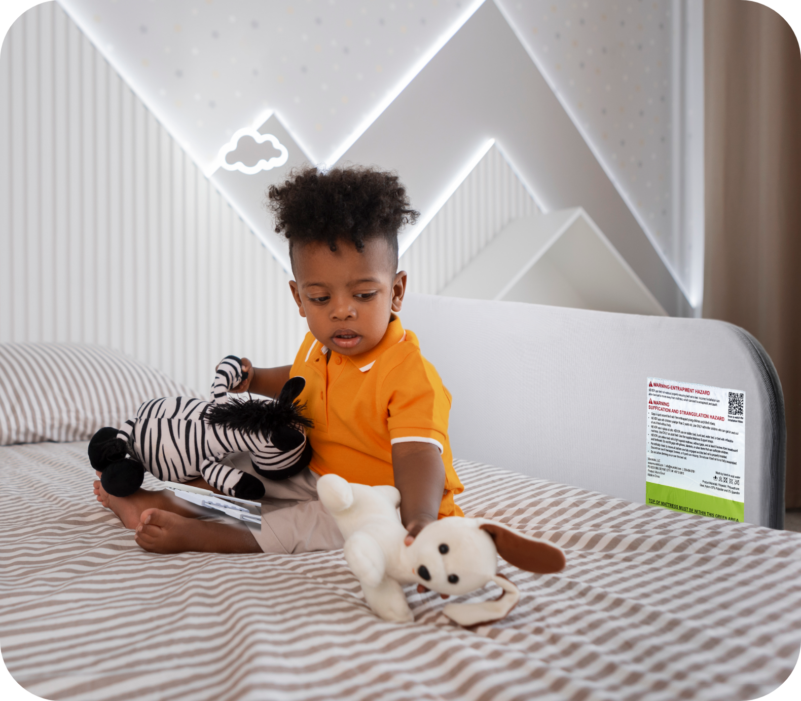 “My little guy moves around a lot in his sleep, but this bed rail keeps him safe and sound all night long. It's easy to install, folds up into a backpack, and gives me peace of mind knowing he's safe. Highly recommend!